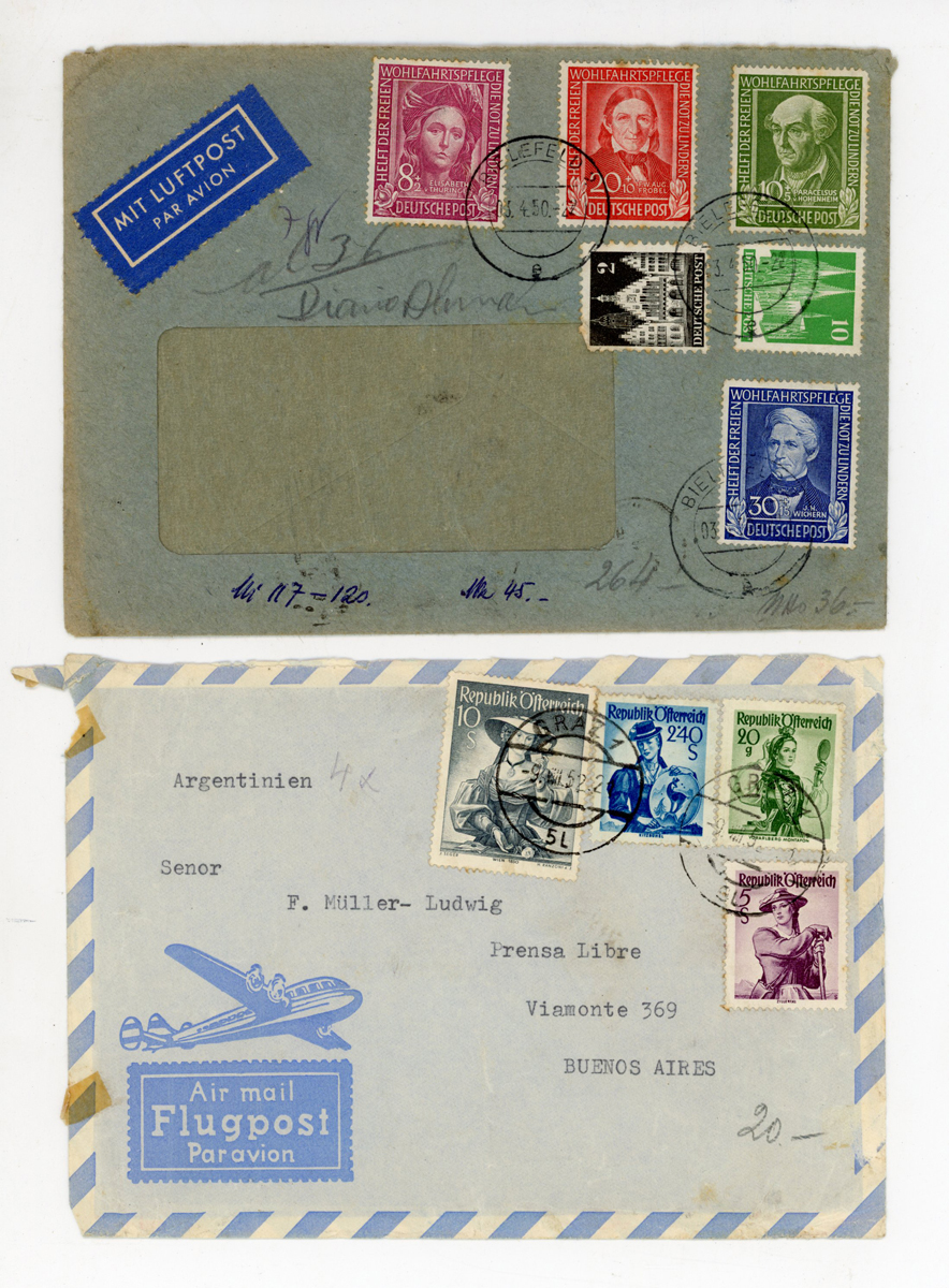 World postal history, mostly 1940s and 1950s covers to England or Argentina with Austria, Germany, Italy stamps, many airmail, high frankings and some censors.