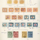 World stamps on album leaves in old auction folders, Italy and Italian States and Colonies, Heligoland reprints in complete unmounted mint sheets of fifty, and Japan.