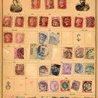 World stamps, an early album plus loose sorted into envelopes with Great Britain 1924 Wembley mint block, France, Switzerland from imperfs, and a few covers with airmail stamps.