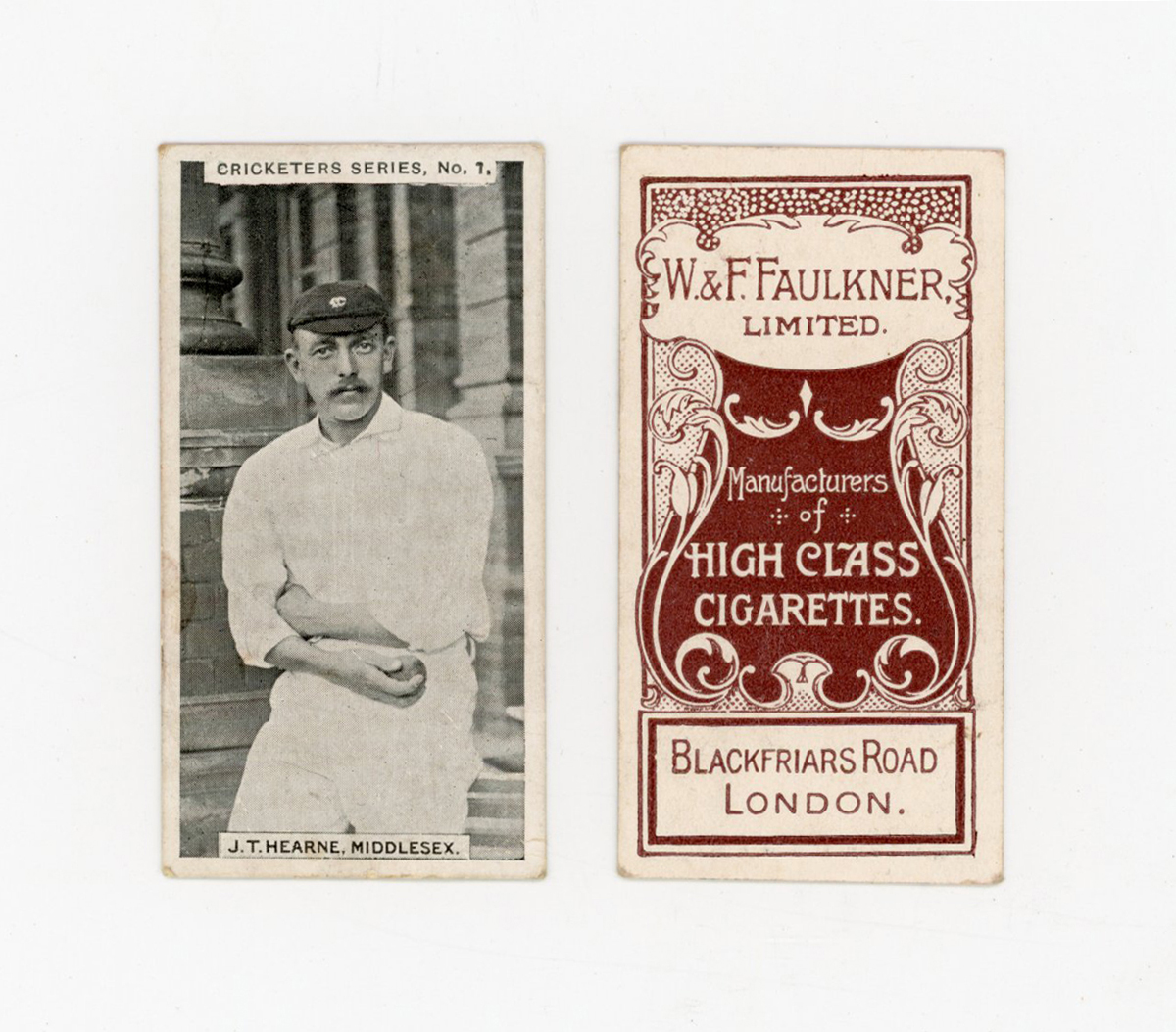 A part-set of 18 (of 20) W. & F. Faulkner ‘Cricketers Series’ cigarette cards circa 1902, (lacking numbers 6 & 8), together with a single duplicate of No 11.