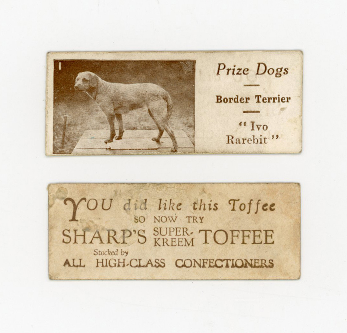 A part-set of 90 (of 100) Sharp’s Toffee ‘Prize Dogs’ trade cards circa 1925.