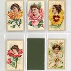 An album of cigarette cards including a set of 25 American Tobacco Co (ATC) ‘Beauties Flower Girls’, a set of 30 Morris’s ‘Actresses’ and 250 Wills overseas ‘Actresses ALWICS’.