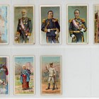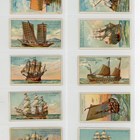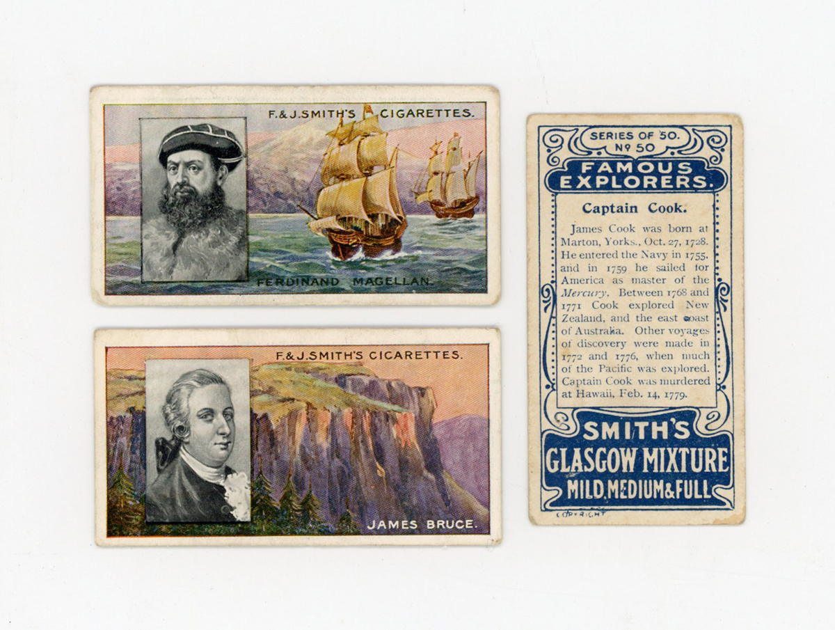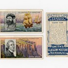 An album of cigarette cards including a set of 50 Smith’s ‘Famous Explorers’, 18 Lambert & Butler ‘Japanese Series’, 40 American Tobacco Co (ATC) ‘Old Ships’, a set of 25 Salmon & Gluckstein ‘Coronation Series 1911’, a set of 100 Gallaher ‘Woodland Tree Series’, and 86 Anonymous medium-size ‘British Naval Crests’.