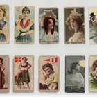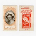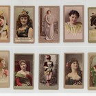 An album of cigarette cards including a set of 30 Wills Scissors ‘Actresses (orange surround)’, 35 British American Tobacco (BAT) ‘Beauties, Tobacco Leaf Back (playing card inset)’ including a few duplicates, 5 A. Baker ‘Beauties of All Nations’ and various odds of beauties and actresses.