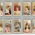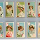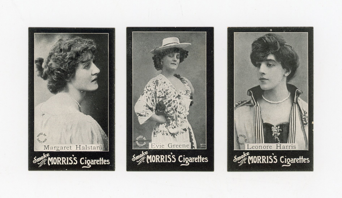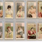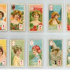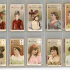 An album of cigarette cards including a set of 30 Morris’s ‘Actresses’, 71 John Scerri ‘Beauties & Children (black and white)’, a set of 52 Wills ‘Beauties (playing card inset)’, and a set of 52 Wills Scissors ‘Beauties (playing card inset, lattice back)’.