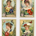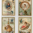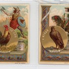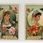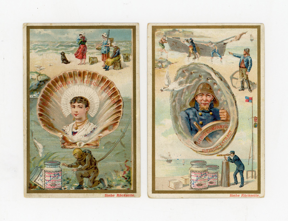 Three albums of approximately 106 large-size Liebig trade card sets including a set of 6 ‘Shells’ S297, a set of 6 ‘Symbols (Birds & People)’ S325, a set of 6 ‘National Beauties II’ S331, and a set of 6 ‘Madame Sans-Gene by Sardov’ S450.