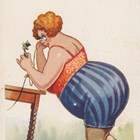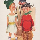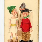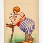 An original watercolour and ink by Dudley Buxton for the postcard ‘Yes darling I’m all ears’, 22cm x 15cm, together with the original Inter-Art Co published postcard and two further original watercolours by Dudley Buxton for postcard designs.