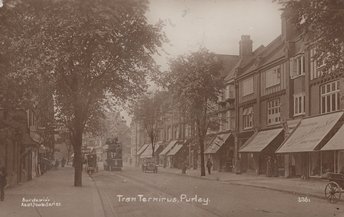 A collection of approximately 100 postcards of Surrey, including photographic postcards titled ‘Tram Terminus, Purley’, ‘Downs Court Road, Purley’, ‘The Fountain, Purley’, ‘The Lord Roberts, Model Village, Purley’, ‘Cliff Estate, Purley’, ‘Downside School, Purley’, ‘High Street, Purley’, ‘Godstone High Street’, ‘High Street, Old Oxted’, ‘The Bell, Oxted’, ‘High Street, Oxted’, ‘East Hill Road, Oxted’ and ‘The Old Town, Lingfield’.