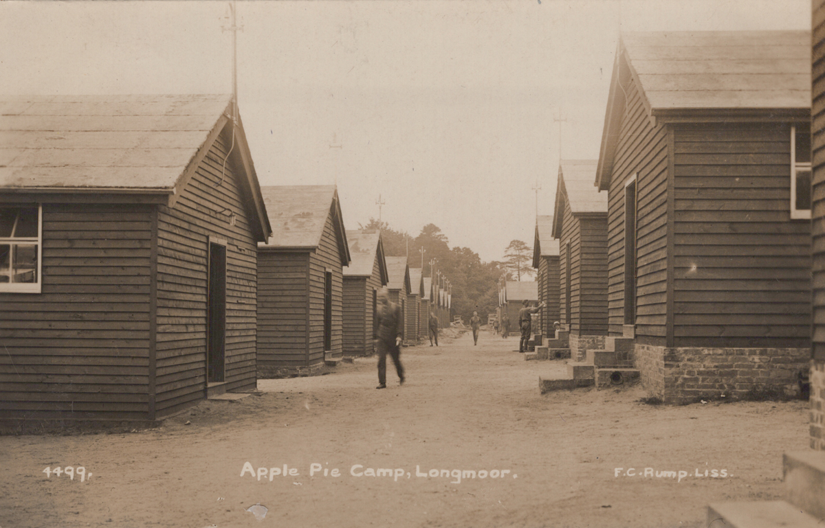 A collection of approximately 52 postcards of military interest, the majority relating to camps, including photographic postcards titled ‘Church Parade, London M.T.O. Brigade’, ‘Apple Pie Camp, Longmoor’, ‘Military Hospital Bulford Camp’, ‘Camp Patcham 1913’, ‘West Down North Camp, Westminster Dragoons’, ‘Drumhead Service’, ‘In Camp near Cheriton Church, Shorncliffe’ and ‘R.E. Depot, Refresher Course M.E. 1912’.