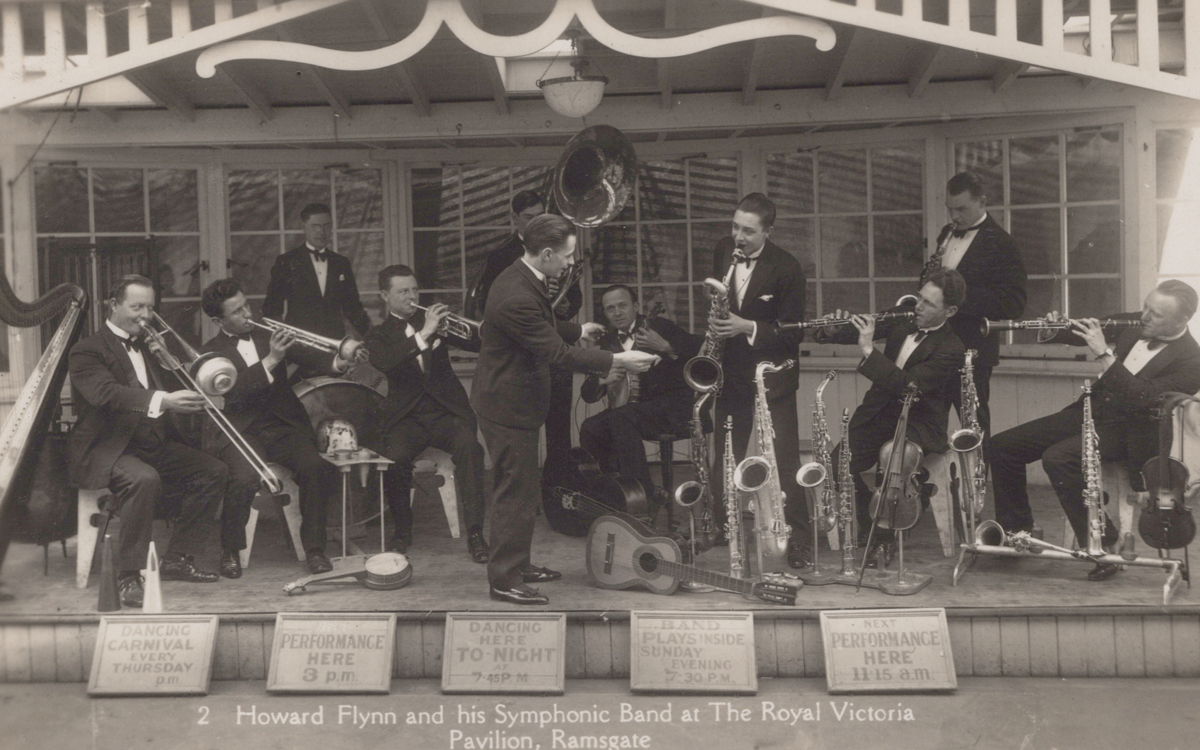 A large collection of postcards in four albums and loose, the majority of Ramsgate and Kent, including photographic postcards titled ‘Howard Flynn and his Symphonic Band at The Royal Victoria Pavilion, Ramsgate’, ‘Donkey Rides at Ramsgate’, ‘West Cliff Promenade, Ramsgate’, ‘Spencer Square, Ramsgate’ and ‘Victor Vorzanger and his Anglo-Dutch Band – Royal Victoria Pavilion, Ramsgate’.