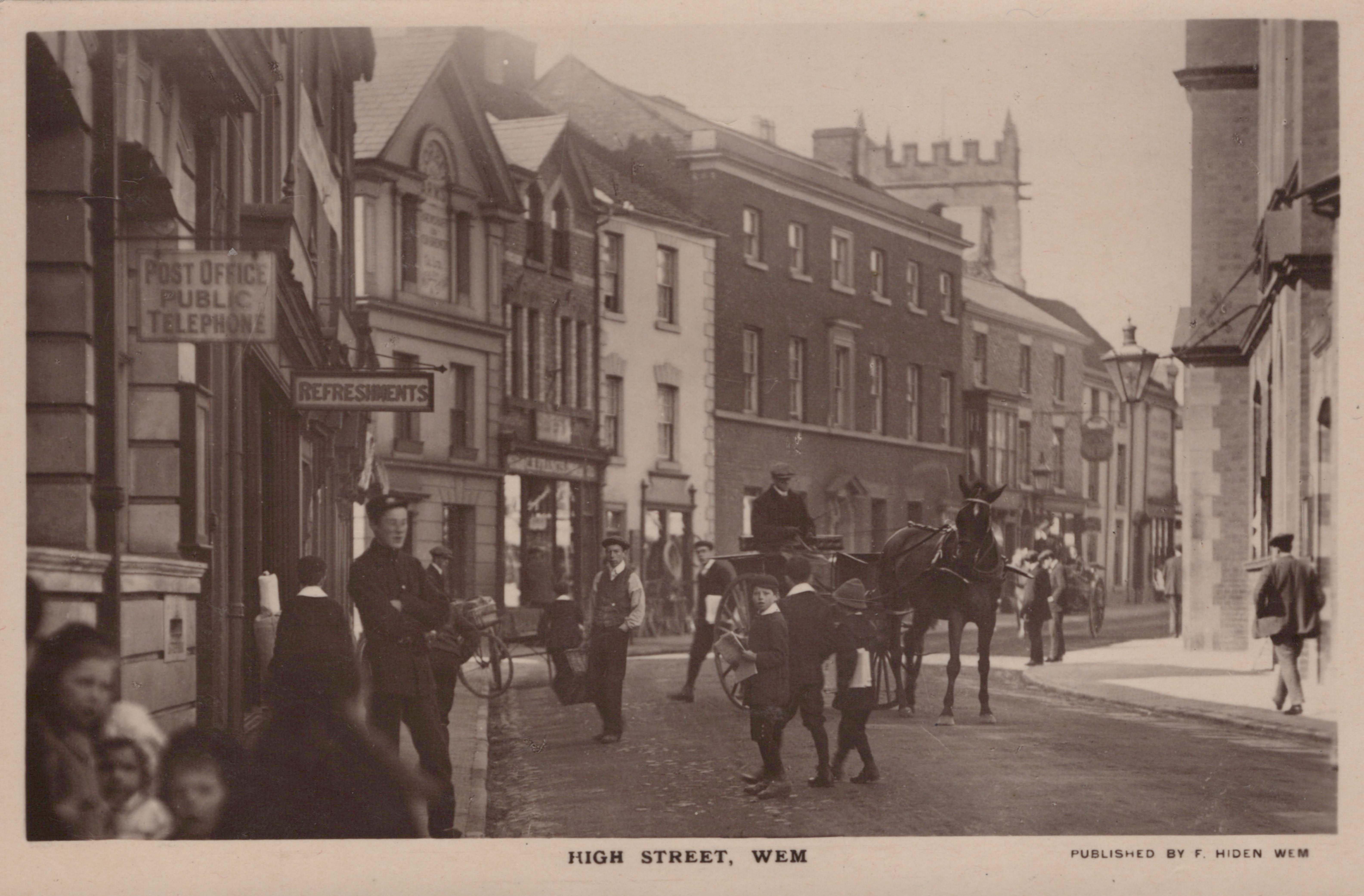 A collection of approximately 162 postcards of Shropshire, including photographic postcards titled ‘High Street, Wem’, ‘The Cross Roads, Much Wenlock’, ‘John Maddock & Co Ltd, Oakengates 1948’, ‘Tong Post Office’, ‘High Street, Bishop’s Castle’, ‘Adcote School, near Shrewsbury’, ‘Old Hall, Lilleshall, Newport’, ‘The Severn & High Rock, Bridgnorth’, ‘Ludlow from Whitcliff’, ‘Broad Gate, Ludlow’ and ‘Lord Hill’s Column, Shrewsbury’.