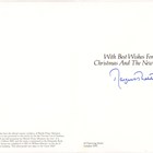 AUTOGRAPHS. A group of three Christmas cards signed by Denis and Margaret Thatcher, and sent from No 10 Downing Street, 21.5cm x 15cm and larger, together with another Christmas card signed by Margaret Thatcher and a further Christmas card signed by John Major.