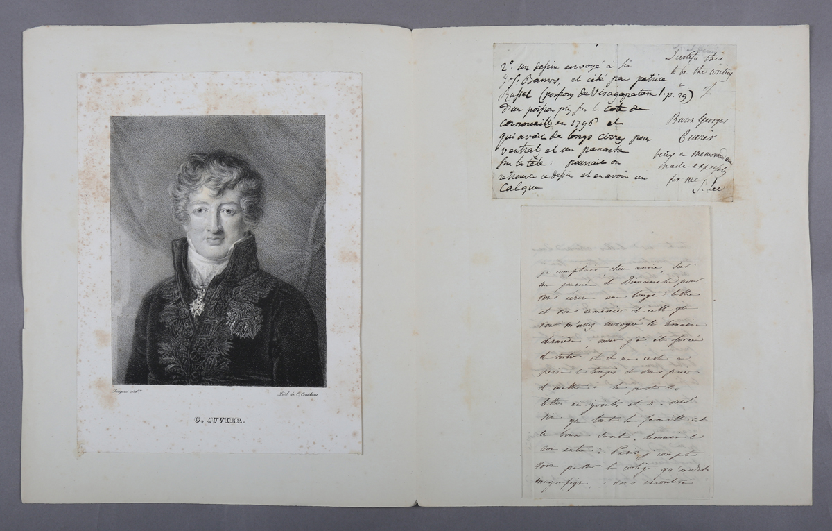 AUTOGRAPHS. A collection of autograph letters signed, cut signatures, and related prints and ephemera tipped or mounted onto bifolium leaves, 33.5cm x 33.5cm, including Baron Cuvier, E. Bulwer Lytton, Charles Barry, Henry Chorley, Lord Melbourne, Lord Minto, Clarkson Stanfield, William Sotheby, and others.