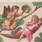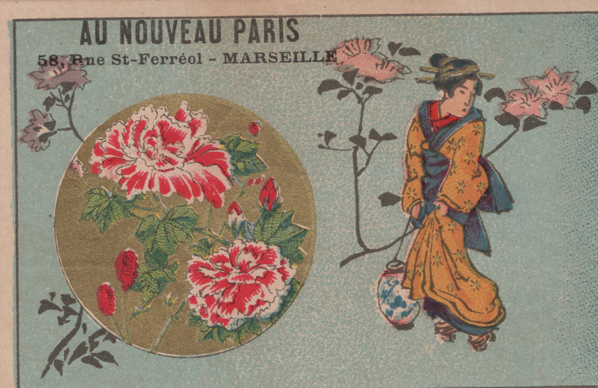 TRADE CARDS. An album containing approximately 210 trade cards, late 19th and early 20th century, advertising various companies, including Huntley & Palmers. La Ville de Paris, and La Place Clichy.