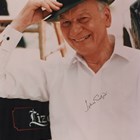 AUTOGRAPHS. A collection of approximately 200 signed photographs, including Christopher Lee, Mary Pickford, Liberace, Peter Cushing, Kit Connor, Maggie Smith, Noel Coward, Tommy Steele, Diana Rigg, Richard Attenborough, Alec Guinness, John Gielgud, Ronnie Barker, Macaulay Culkin, Vincent Price, Dirk Bogarde, Mark Lester, Norman Wisdom, Patrick Macnee, and another signed by Richard Attenborough and Laurence Olivier, most 25cm x 20cm.