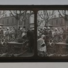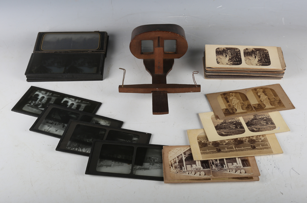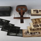PHOTOGRAPHS. A collection of 18 stereoscopic viewing cards, 6 glass stereoscopic viewing slides, and a set of 10 glass stereoscopic slides of a market in Morocco, together with a stereoscopic viewer.