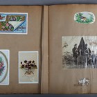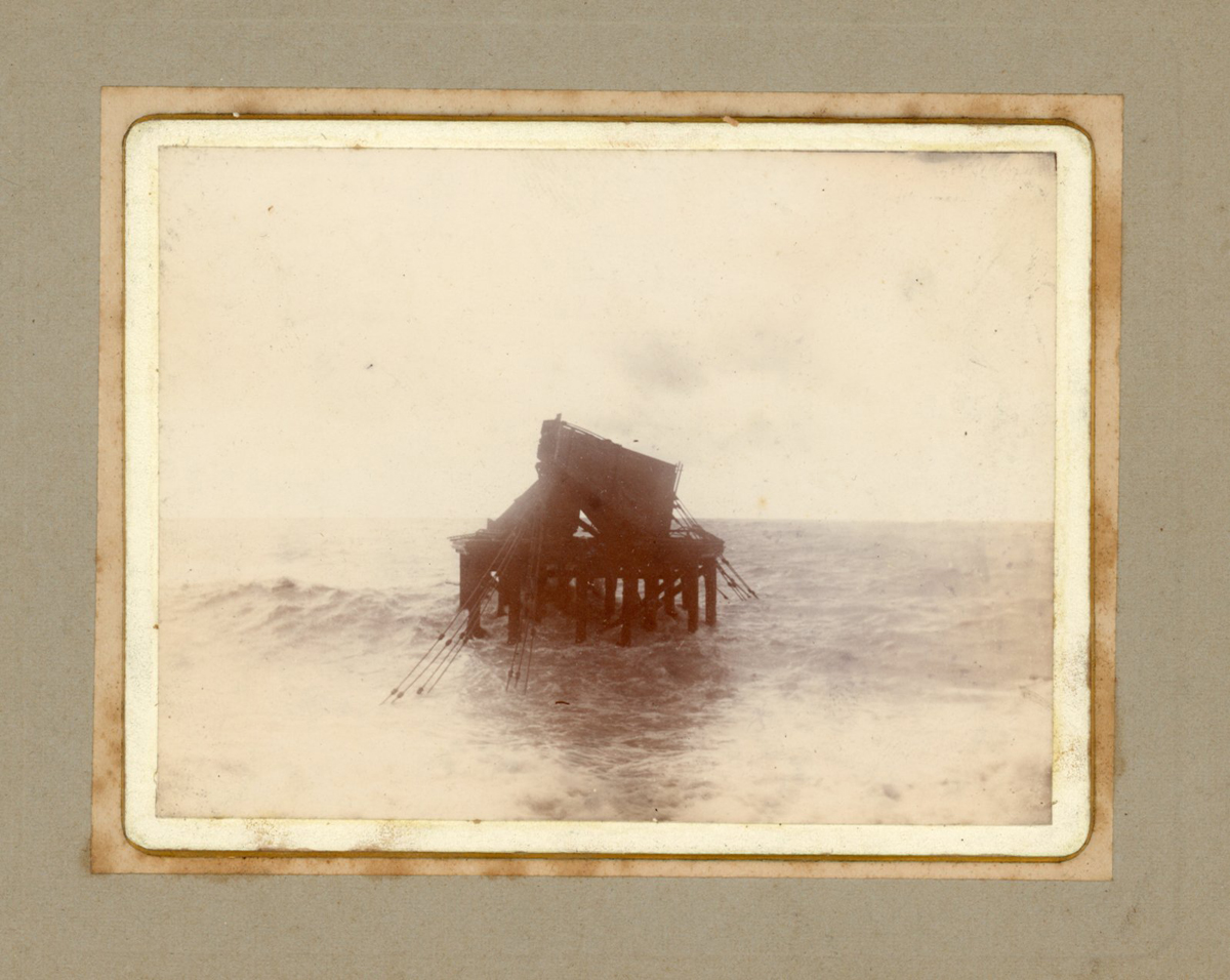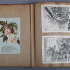 SCRAP ALBUM. An album containing mounted albumen-print photographs, greetings cards and ‘scraps’, leaves 28cm x 23cm, together with a photograph of the wrecked Brighton chain pier.