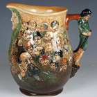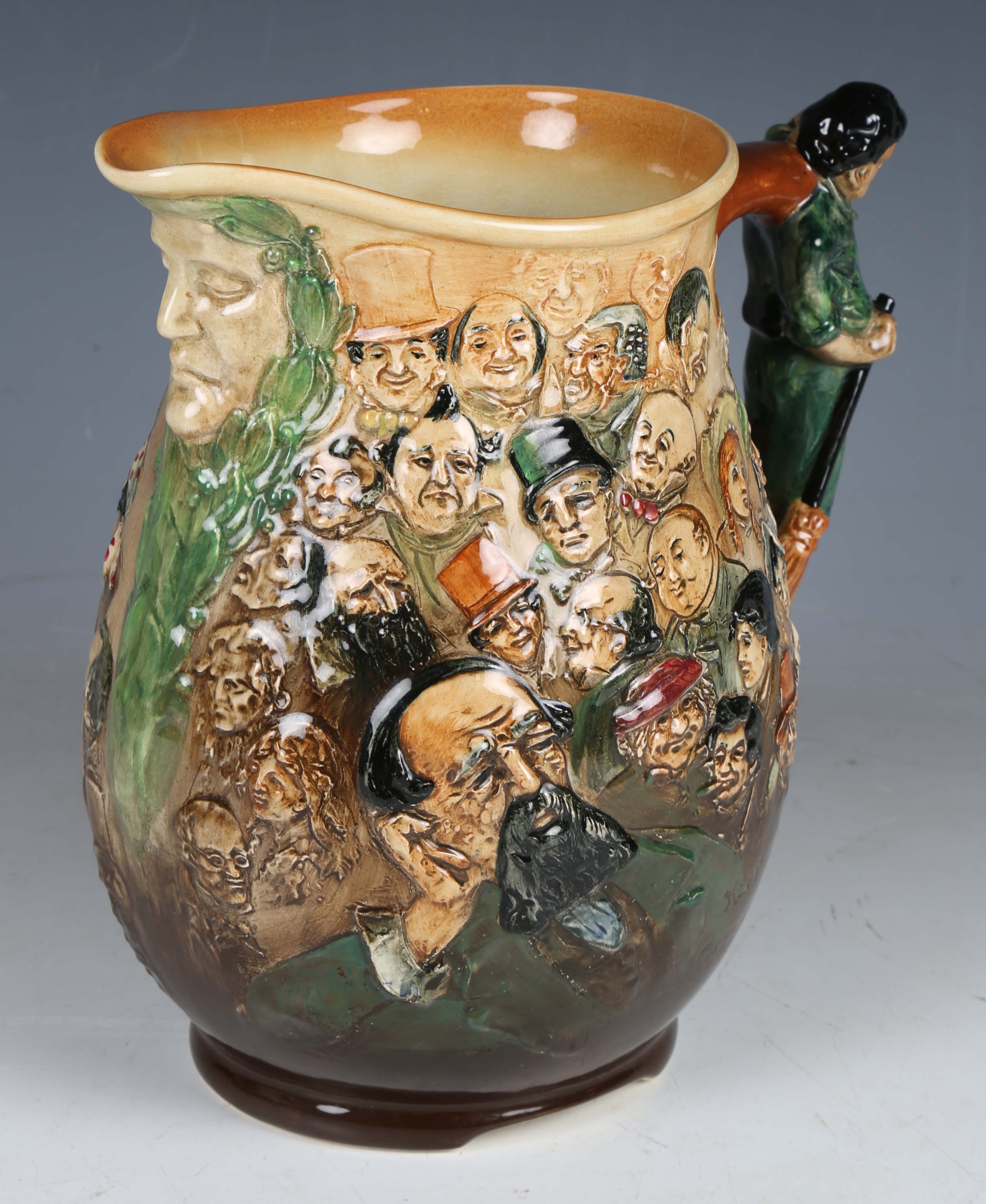 A Royal Doulton Dickens 'Dream' Jug, circa 1933, designed by Noke, green printed marks to base with list of characters, height 27cm.