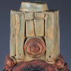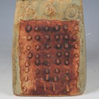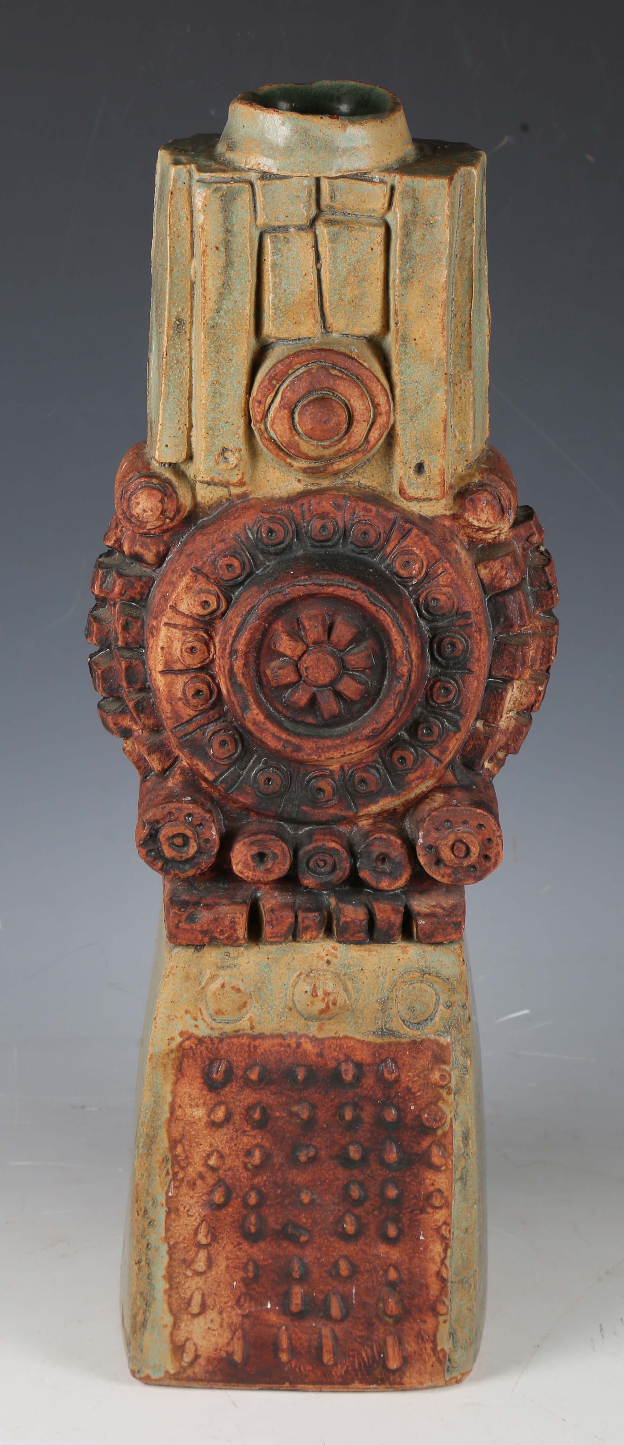 A large Bernard Rooke stoneware studio pottery vase, constructed from a series of slab built Brutalist sections including cogs and wheels, impressed mark to side edge, height 48cm.