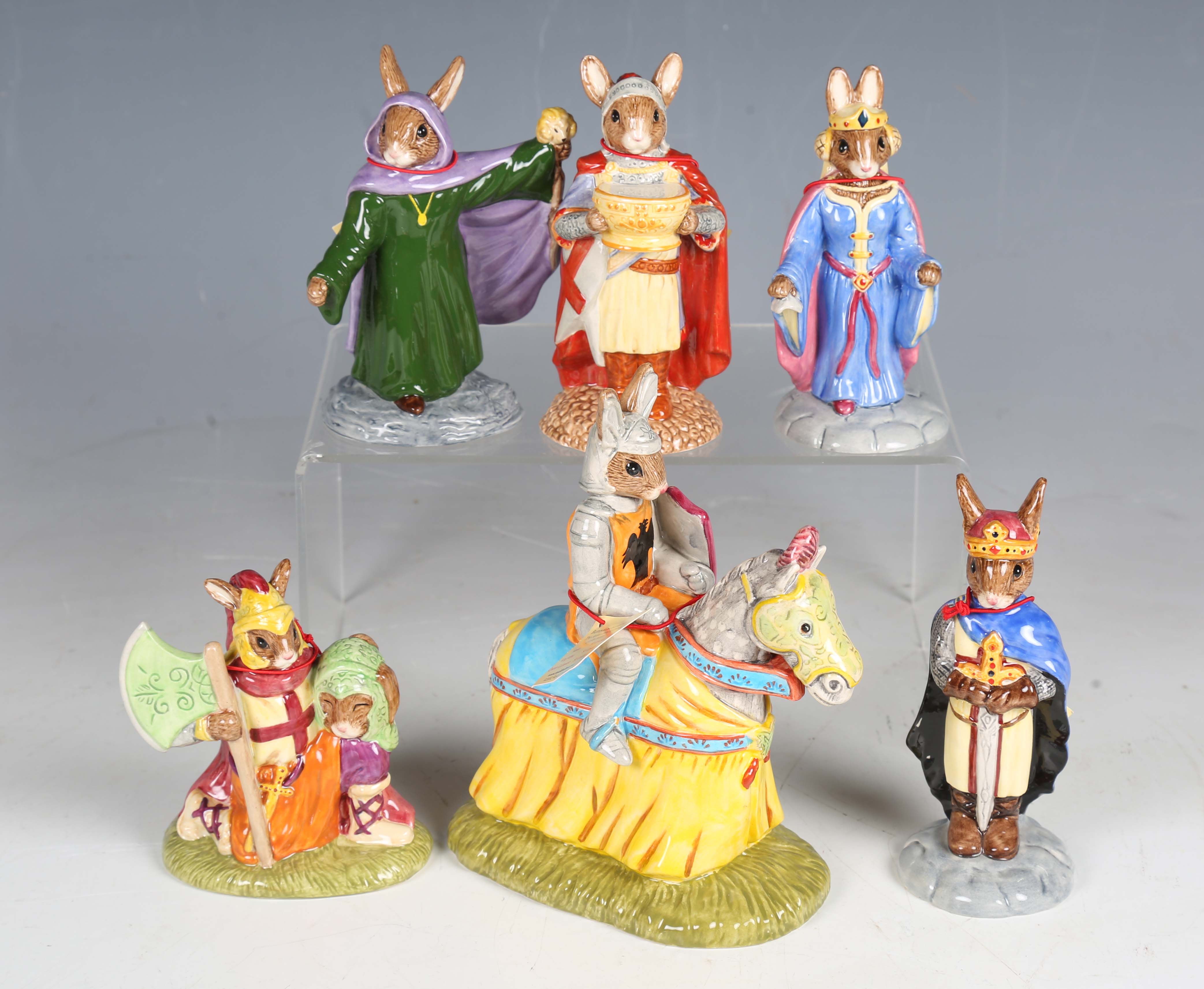 A set of six Royal Doulton Bunnykins Arthurian Legend Collection figures, comprising Sir Gawain, King Arthur, Merlin, Sir Galahad, Sir Lancelot and Queen Guinevere, each boxed with certificate.