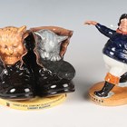 Two Royal Doulton limited edition Millennium Collectables advertising figures, comprising The Cherry Blossom Kittens, No. 234 of 750, and The Jolly Fisherman, No. 245 of 750, together with four Wade limited edition Millennium Collectables Michelin Bibendum miniatures, each from an edition of 750, comprising Santa, Sailor, Red Indian and Cowboy, all boxed with certificates.