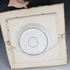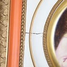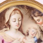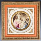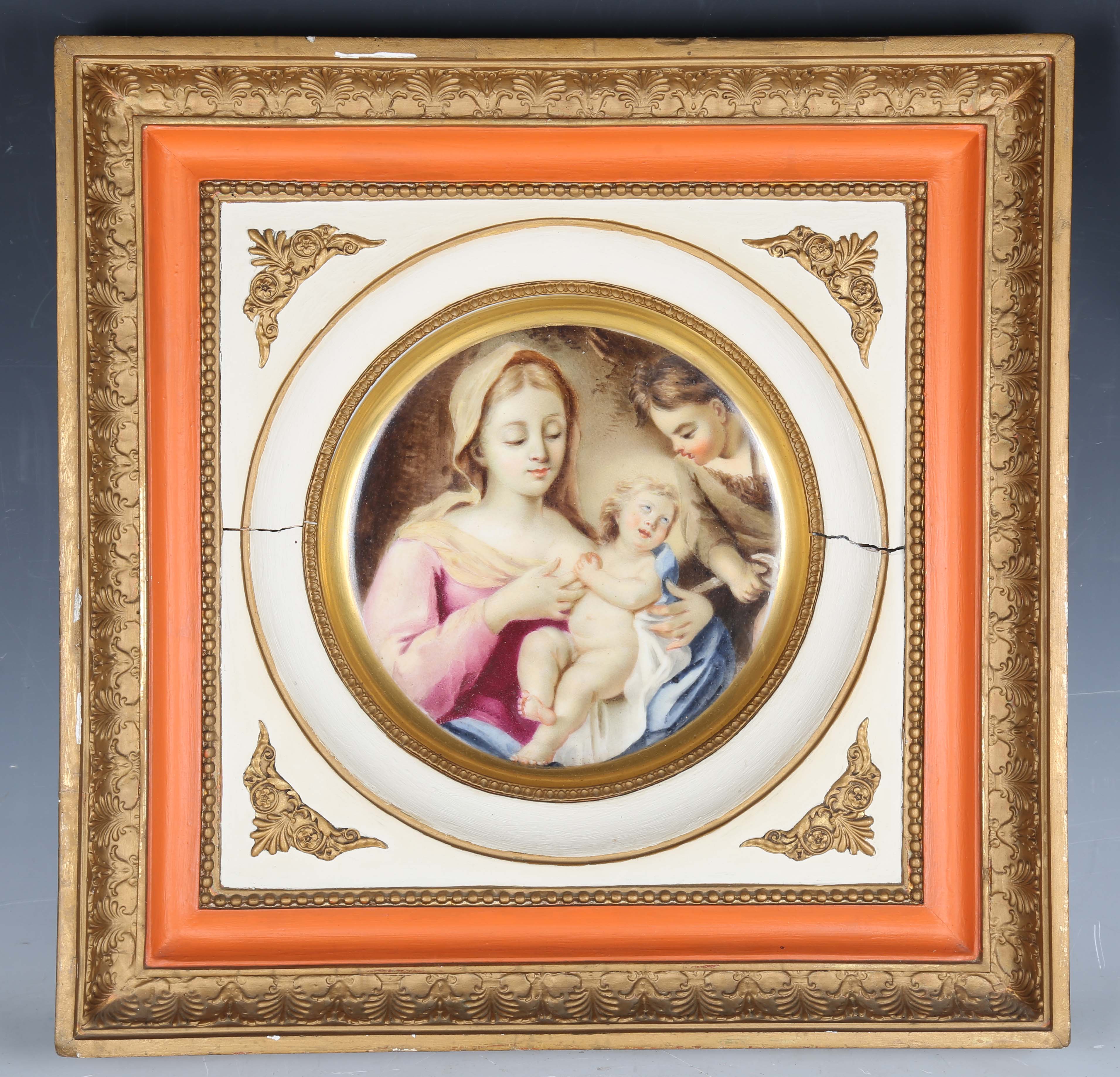 A Continental porcelain plate, probably Paris, late 19th/early 20th century, painted with the Madonna and child and a boy onlooker, held within a painted and gilt composition square frame, unmarked, plate approx 27cm diameter, frame 46cm square (minor faults).