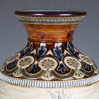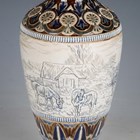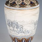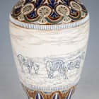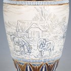 A Doulton Lambeth stoneware vase, dated 1887, decorated by Hannah Barlow, monogrammed, with a continuous band of grazing horses and geese outside a farmyard barn, between stylized foliate and geometric borders, impressed and incised marks to base, height 31.5cm (minor professional restoration to foot).