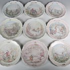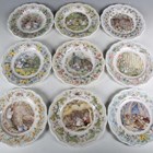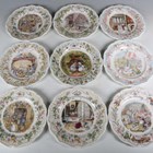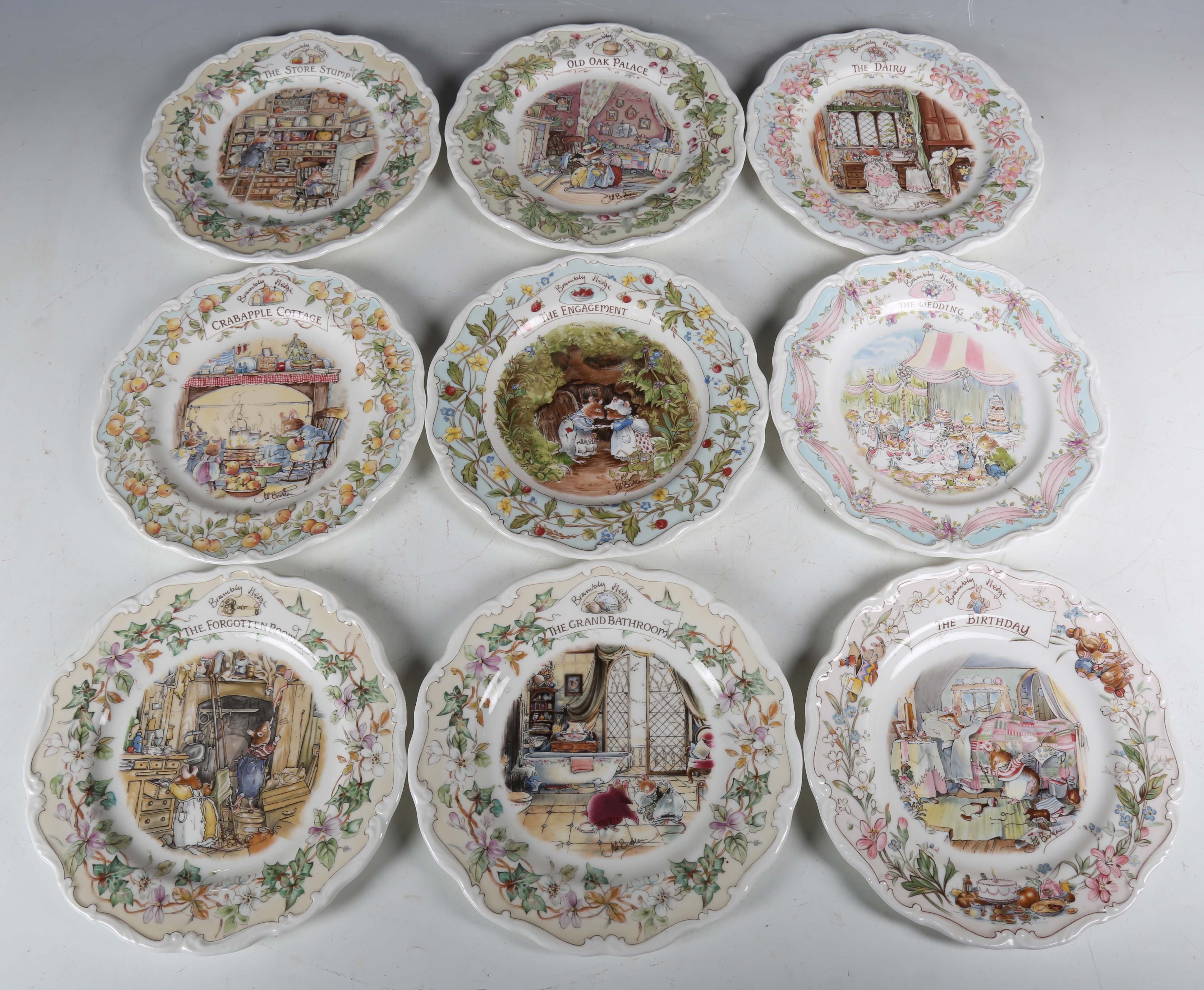 Twenty-seven Royal Doulton Brambly Hedge collector's plates, comprising the seven series Special Occasions, Secret Staircase, Homes and Workplaces of the Mice, Midwinter, Seasons, Surprise Outing and Primrose's Adventure (Special Occasions includes three plates, each of the other sets includes four plates), together with four Royal Albert Wind In The Willows collector's plates, six Royal Doulton Wind In The Willows collector's plates and five other collector's plates.