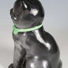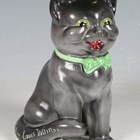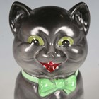 A Wilkinson Ltd Louis Wain The Laughing Cat, circa 1929, the seated grey/black cat with green eyes and neck ribbon, green printed factory mark to base and inscribed tail, height 19cm.