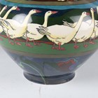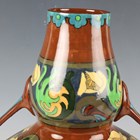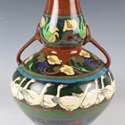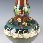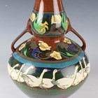 A Wileman & Co. Foley Intarsio two handled vase of bulbous shape with pear shaped neck, designed by Frederick Rhead, with a band of geese between stylized foliate banding against a brown ground, black printed factory marks to base with numerals '3084', height 30cm.
