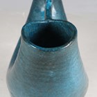An Accolay French pottery vase, mid 20th century, the double necked body with vertical join, covered in a shaded turquoise glaze, incised marks to base, height 24cm.