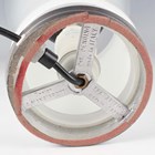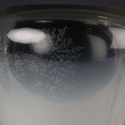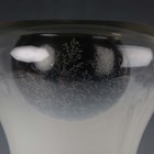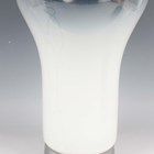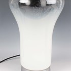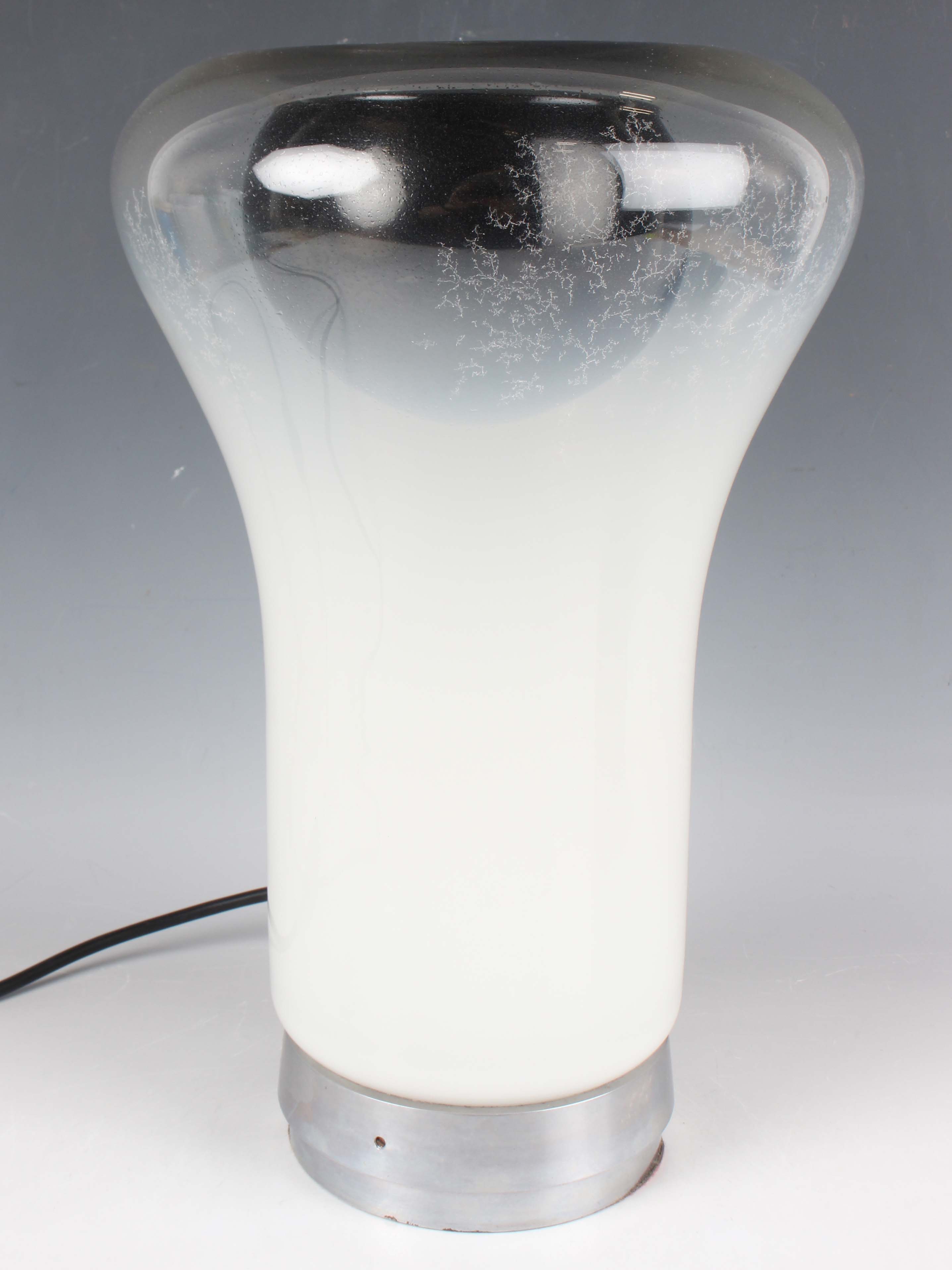 An Italian glass Saffo lamp produced for Artemide, later 20th century, designed by Angelo Mangiarotti, the opaque white to clear cylindrical body rising to a bulbous top with sunken inner black glass well, moulded marks to metal fixings, total height 34cm.