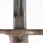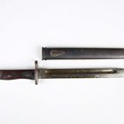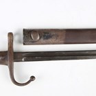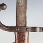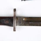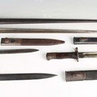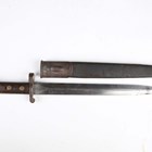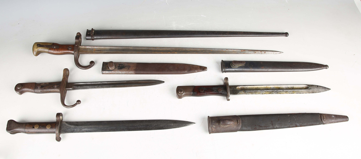 A French 1874 model Gras bayonet with straight single-edged blade, blade length 52.5cm, dated 1876, steel crossguard with hooked quillon and wood plate grips, with steel scabbard, together with an 1888 pattern Lee-Metford rifle bayonet, blade length 30.5cm, with stitched leather scabbard, and two other European bayonets.
