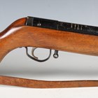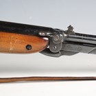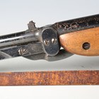 A mid to late 20th century Webley Mark 3 .22 air rifle with front and rear sighted barrel, barrel length 48.5cm, underlever break-action and leather shoulder strap.