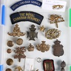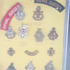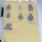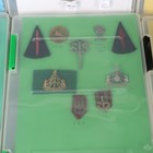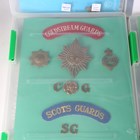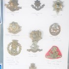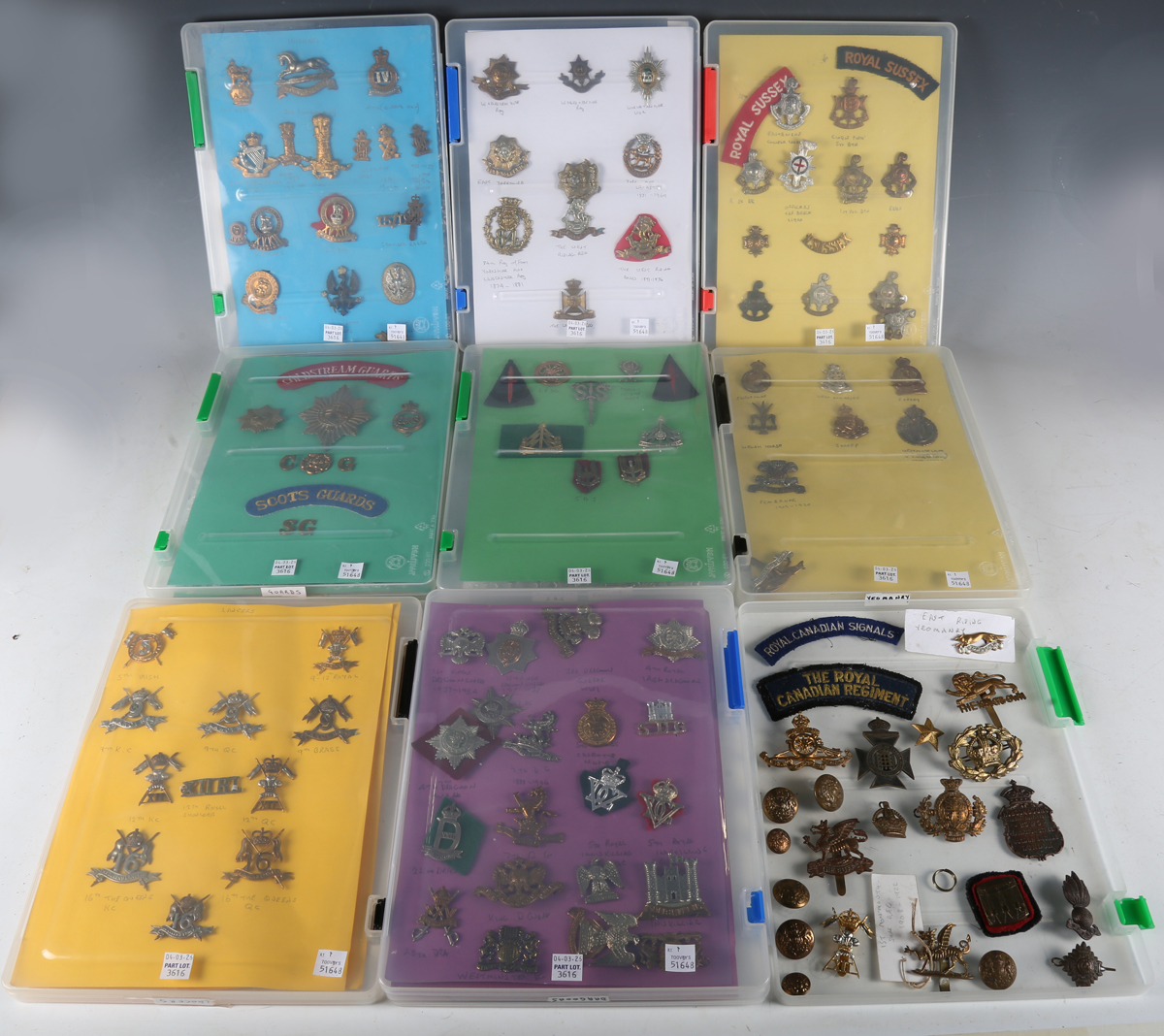 A large collection of 20th century British regimental cap and other badges, including 17th/21st Lancers, SAS, Coldstream Guards and Royal Sussex (some restrikes), within plastic display cases, together with a small group of Second World War campaign stars, badges and other items.