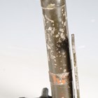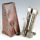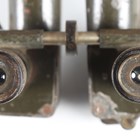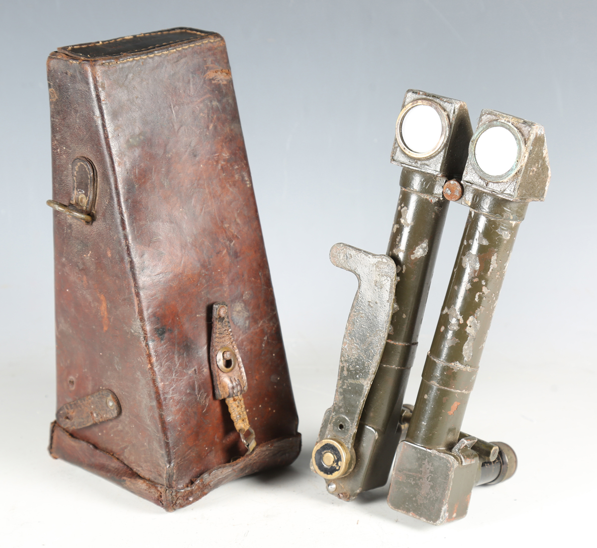 A scarce pair of First World War period French trench-style artillery binoculars by BBT Krauss, Paris, the green painted body marked '8x40 H 6400 1512', with stitched leather carry case (overall losses and environmental damage).