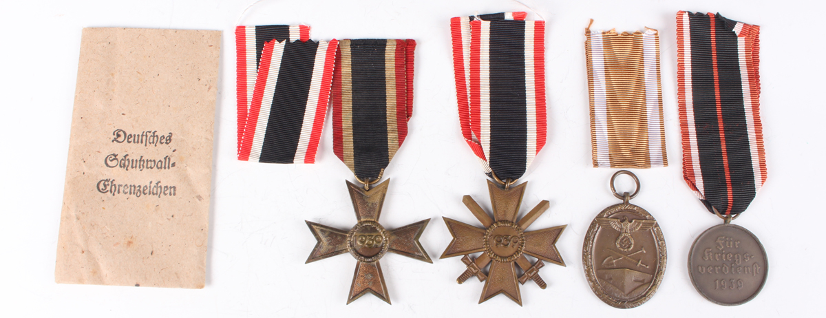 Four Second World War German awards, including a War Merit Cross with swords and a War Merit Cross without swords.