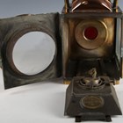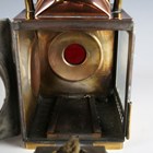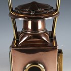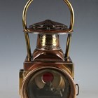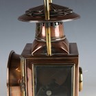 A scarce late 19th/early 20th century copper and brass fire engine/carriage lamp by Shand Mason & Co, with applied oval pressed brass maker's plate, detailed 'Shand Mason & Co Fire Engine Makers, Upper Grounds, Blackfriars Road, London', circular glass light aperture, adjustable wick burner and brass suspension bracket, height 36.5cm.