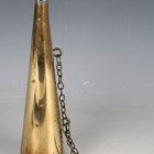 A 20th century London, Midland & Scottish Railway firefighter's long axe by Brades, the steel head mounted on an ash shaft, length 85.5cm, together with a brass railway warning horn, length 34.5cm, with suspension chain.