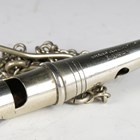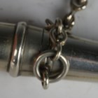 A rare late 19th/early 20th century firefighter officer's Beaufort type nickel whistle by Shand Mason & Co, London, of typical conical form with suspension chain.
