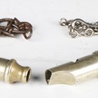 Two scarce late 19th/early 20th century firefighter officers' nickel whistles, comprising a Metropolitan Patent example by Merryweather & Sons, London, with steel suspension chain, and an example detailed 'The Metropolitan' with double end mouthpieces and suspension chain.