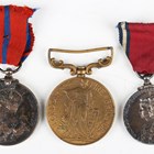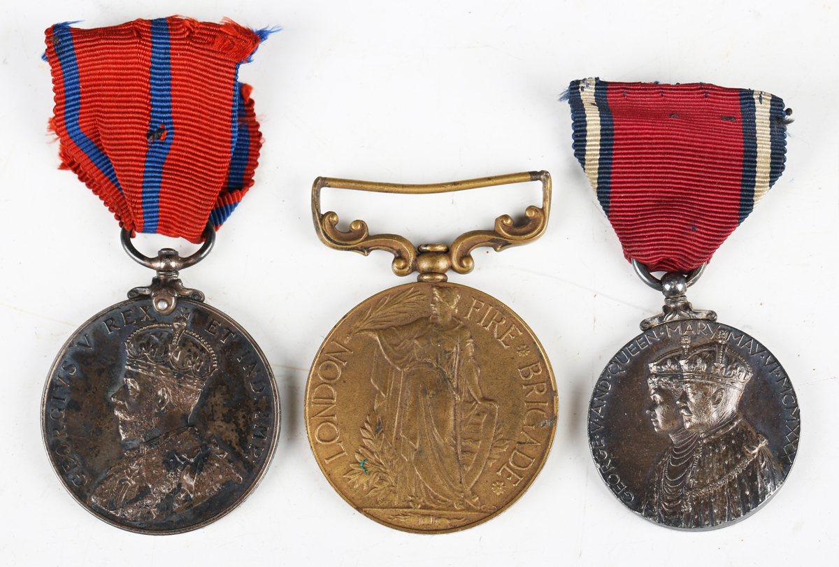Three medals, comprising London Fire Brigade Good Service Medal to 'Fireman R.L. Jones', London Fire Brigade 1911 Coronation Medal to 'Fireman R.L. Jones' and George V and Queen Mary Jubilee Medal 1910-1935, unnamed, with card box of issue (faults).