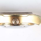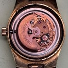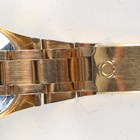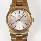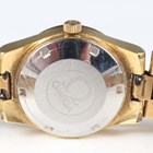 An Omega Automatic gilt metal fronted and steel backed lady's bracelet wristwatch with signed and jewelled movement, the signed silvered dial with baton hour markers, centre seconds and date aperture, the tapered link bracelet with signed foldover clasp, case diameter 2.6cm.