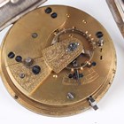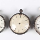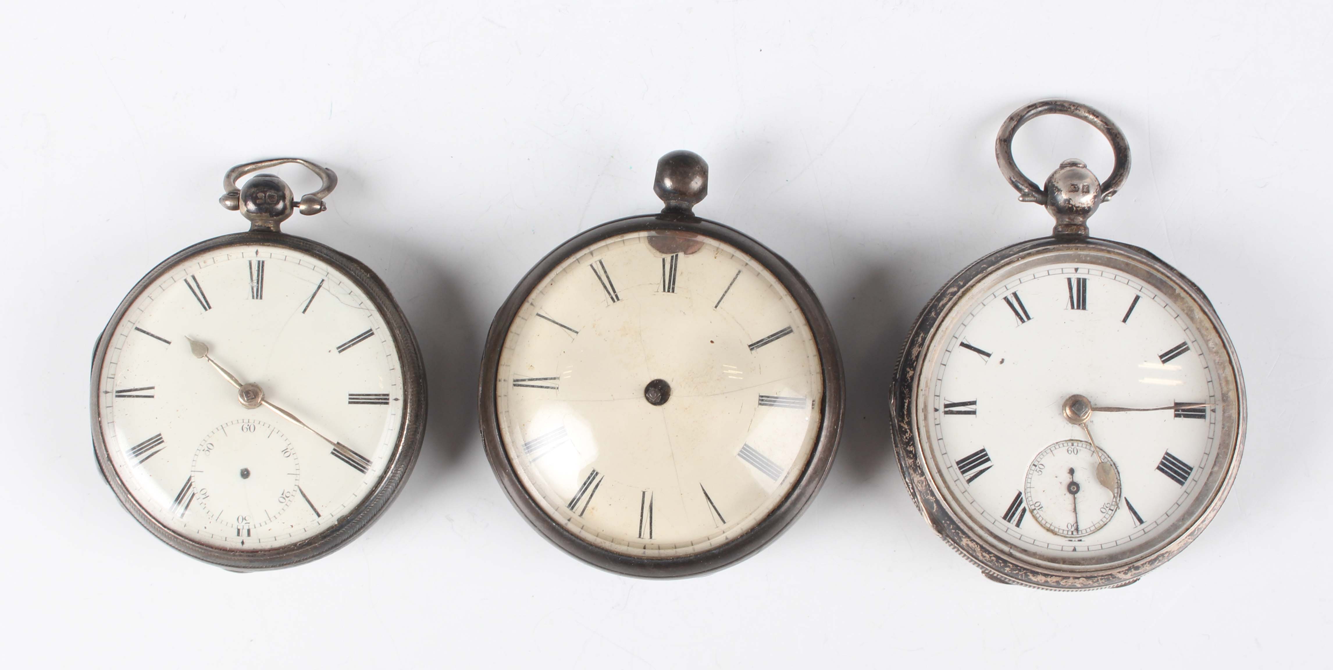 A silver cased keywind open-faced gentleman's pocket watch, London 1840, case diameter 4.8cm, and two other silver cased keywind open-faced pocket watches, case diameters 4.8cm and 4.7cm, together with a J.W. Benson Ltd brown leather pocket watch case and another leather watch case.