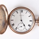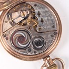 An Elgin 9ct gold hunting cased keyless wind gentleman's pocket watch with signed and jewelled movement, the signed white enamelled dial with black Roman hour numerals and subsidiary seconds, with gold inner case, Birmingham 1927, total weight 95.9g, case diameter 4.9cm.