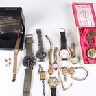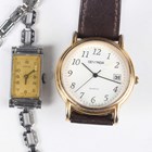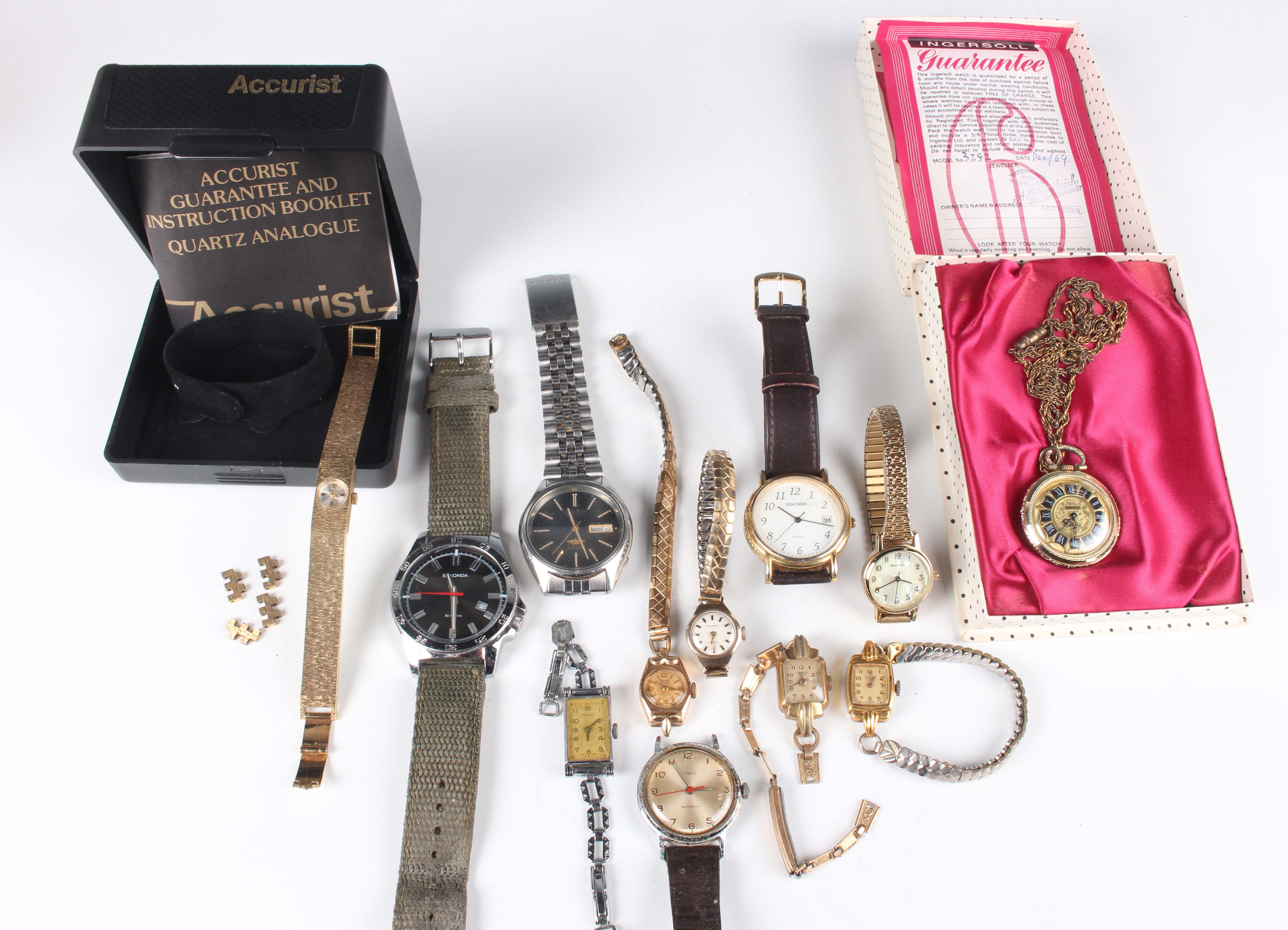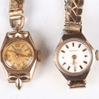 A Rone Fifteen 9ct gold cased lady's wristwatch, London 1957, case width 1.6cm, and a Regency 9ct gold cased lady's wristwatch, London 1971, case width 1.7cm, both on gilt metal fronted expanding metal bracelets, together with ten further watches.
