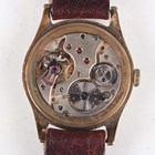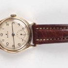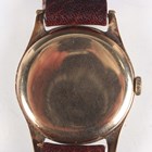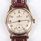 A Rolex 9ct gold circular cased gentleman's wristwatch, Ref. 12325, with signed and jewelled movement, the signed silvered dial with black Arabic hour numerals, blued steel hands and subsidiary seconds, the signed case back interior numbered '12325' and '275136', Birmingham 1949, case diameter 3cm, on a brown leather strap.