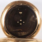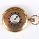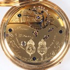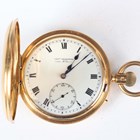 A fine 18ct gold half-hunting cased keyless wind gentleman's pocket watch with jewelled gilt movement, the backplate signed 'Chas Frodsham. 27 South Molton St London 'AD FMSZ, by appointment to the King', with two engraved crowned awards and numbered '09962', the signed enamelled dial with black Roman hour numerals and subsidiary seconds, the case front with black Roman hour numerals, London 1925, total weight 153.4g, case diameter 5.4cm. Note: Charles Frodsham (1810-1871), the celebrated English horologist, established the firm of Charles Frodsham & Co, which remains the longest continuously trading firm of chronometer manufacturers in the world.