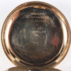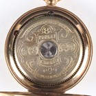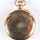 A Hebdomas gilt metal cased keyless wind open-faced gentleman's pocket watch, the enamelled dial with black Roman hour numerals and detailed 'Hebdomas Patent 8 Days Swiss Made', with blued steel hands and visible escapement at 6 o'clock, case diameter 5cm.