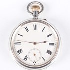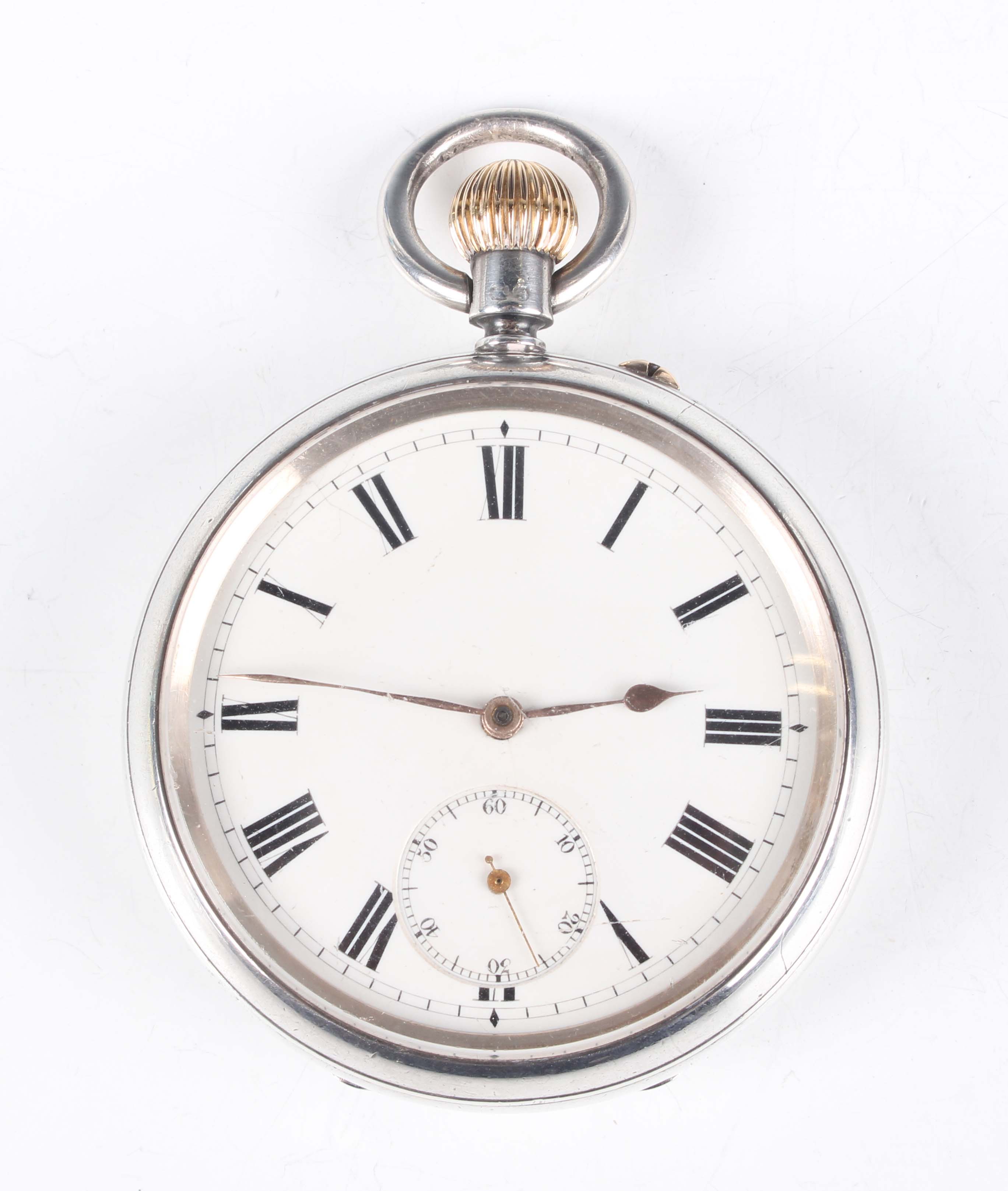 A late Victorian silver cased keyless wind open-faced 'Karrusel' gentleman's pocket watch, the three-quarter plate movement with Bahne Bonniksen patent revolving carriage escapement, detailed 'B.B Patent No. 21421', the backplate numbered 'No. 3027', the white enamelled dial with black Roman hour numerals and subsidiary seconds, London 1894, total weight 180g, case diameter 5.7cm. Note: Bahne Bonniksen (1859-1935) was a Danish watchmaker and inventor who came to London aged 24 before settling in Coventry. His karrusel (or carousel) invention featured a revolving carriage escapement, which he patented in 1892. See 'The Camerer Cuss Book of Antique Watches', pages 272 and 273 for illustrations and text.